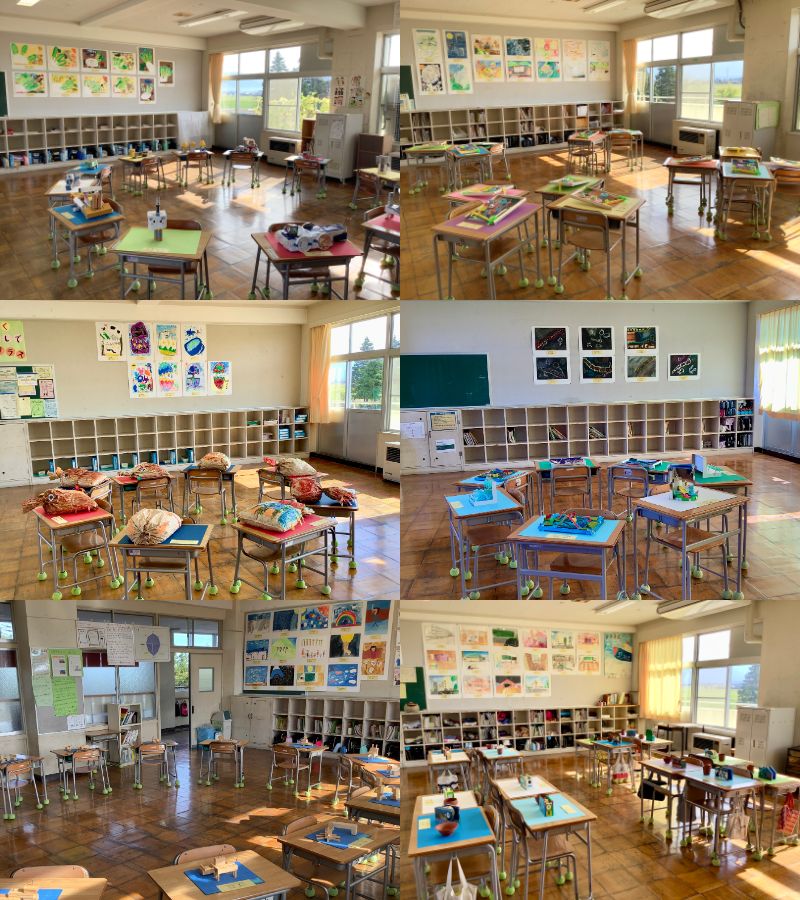 各教室に、子どもたちがじっくり取り組んだ絵画作品、工作作品が並びました。どの作品にも子どもたちのこだわりや工夫が見られ、素敵な作品ばかりでした。