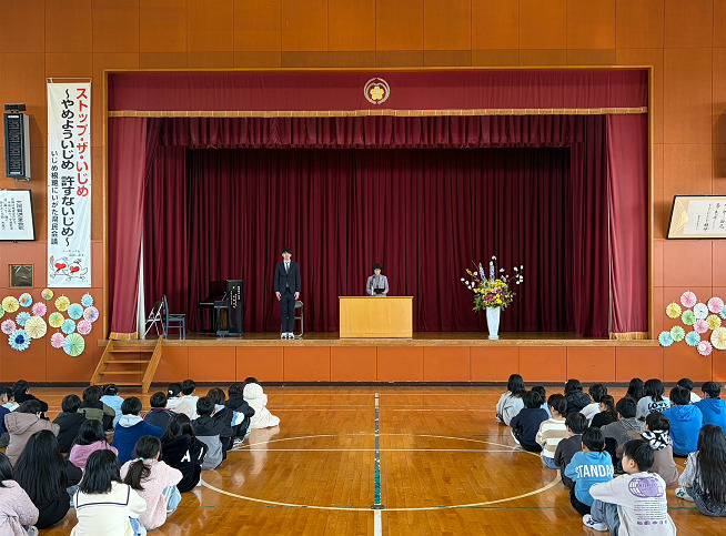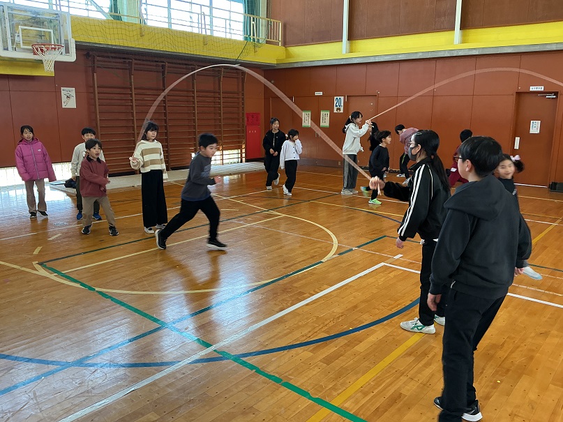 本番では、目標記録を達成できた班も達成できなかった班もありましたが、どの班も1~6年生が協力してやり抜いたことに満足した表情をしていました。温かいふれあいが見られた大なわ大会でした。