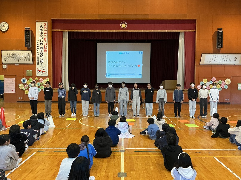 6年生クイズや歌、メッセージ色紙やメダルのプレゼントなどを通して、1~5年生が感謝の気持ちを伝えました。また6年生も、劇や感謝の言葉で、お返しをしてくれました。
