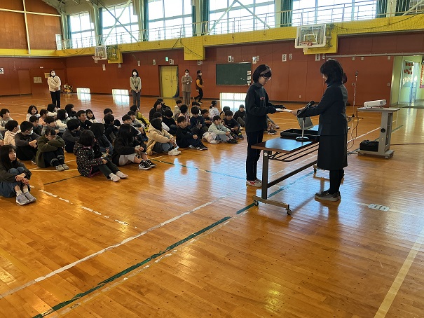 校長先生からはまず、3月に開催される「ミラノ・コルティナパラリンピック」にかかわって「社会の中にある様々なバリア(物理的、心理的な障壁)を減らしていくことが大切」であることが伝えられました。また、「1年の成長を振り返り最後のまとめにしっかりと取り組んでほしい」「みずからすすんで取り組んできた一人一人の努力が表れる3月になるとよいですね」とのお話もありました。