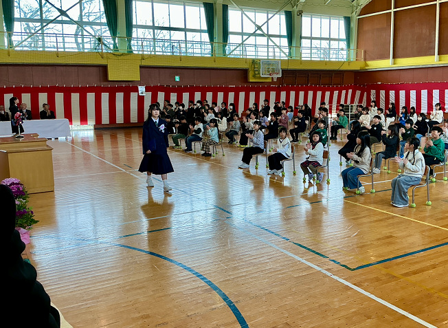 小学校での思い出を胸に、そして校長先生からいただいた卒業証書を手にした卒業生16名は、岡方第一小学校から羽ばたいていきました。