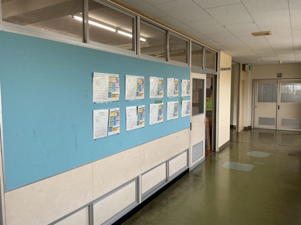 本日、6年生は「全国学力・学習状況調査」に取り組んでいます。 よい意味で緊張感が伝わる6年生教室です。 廊下の掲示板には、「1年生をむかえる会」の振り返りがありました。 「紙ひこうき大会は …