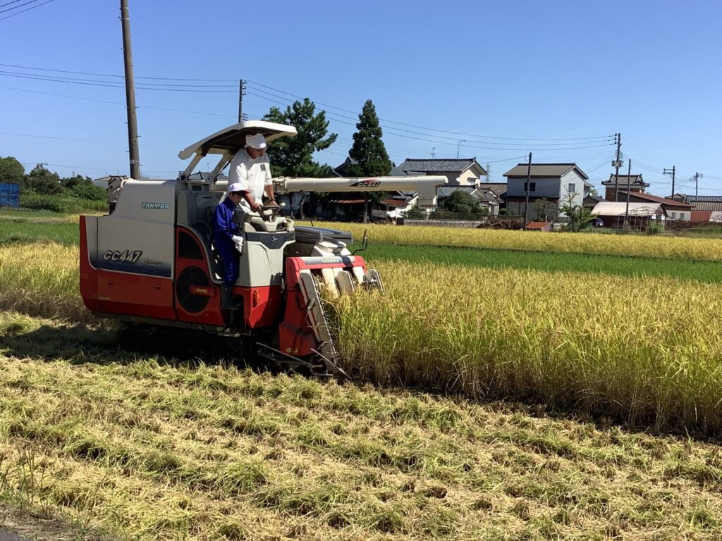 気持ちのよい秋晴れの下、多くのボランティアの皆様に見守られ、5年生が稲刈りを行いました。 まずは、コンバインに乗って、稲刈り作業を間近で見ます。 次に、様から鎌を使った手作業を教えていただき …