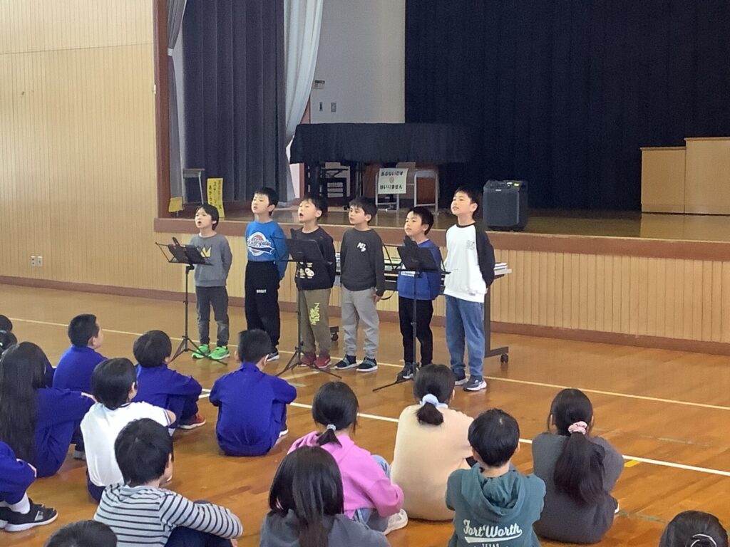 「100点!」「90点!」と発表を終えた2年生から、元気よく自己採点が聞かれました。 歌と演奏を合わせて6曲の2年生の音楽発表が、午後の体育館に広がりました。 この日も、発表する人と静かに聞く人 …