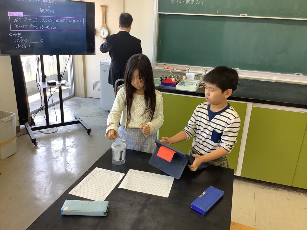 強風や降雨の中でしたが、2年生の元気なあいさつで11月最終登校日を迎えました。 11月も落ち着いて活動に取り組む岡方第二小学校の子どもたちが見られました。 昨日の学習からですが、4年生は水が凍る …