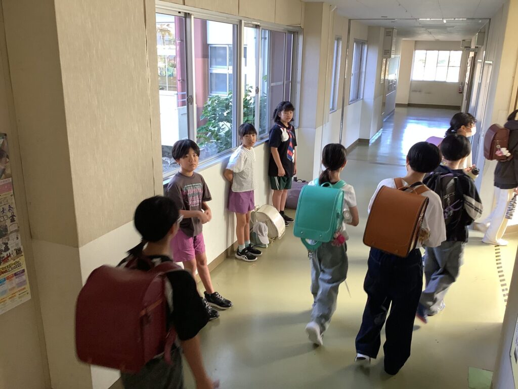 玄関前や廊下から元気なあいさつが聞かれる岡方第二小学校、本当に素敵ですね。