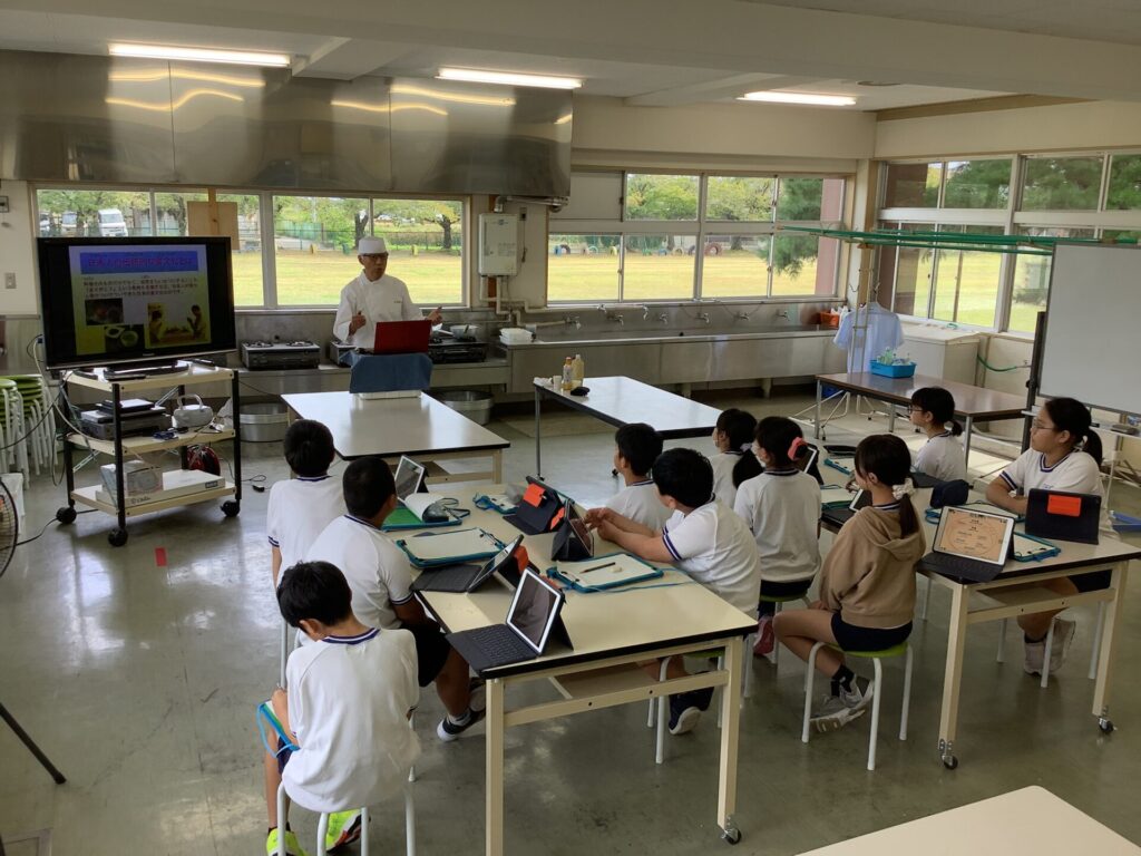9月29日(月)3限、和食文化国民会議料理講師 鍵冨茂様をお迎えして、和食に関する食育出前授業が開かれました。