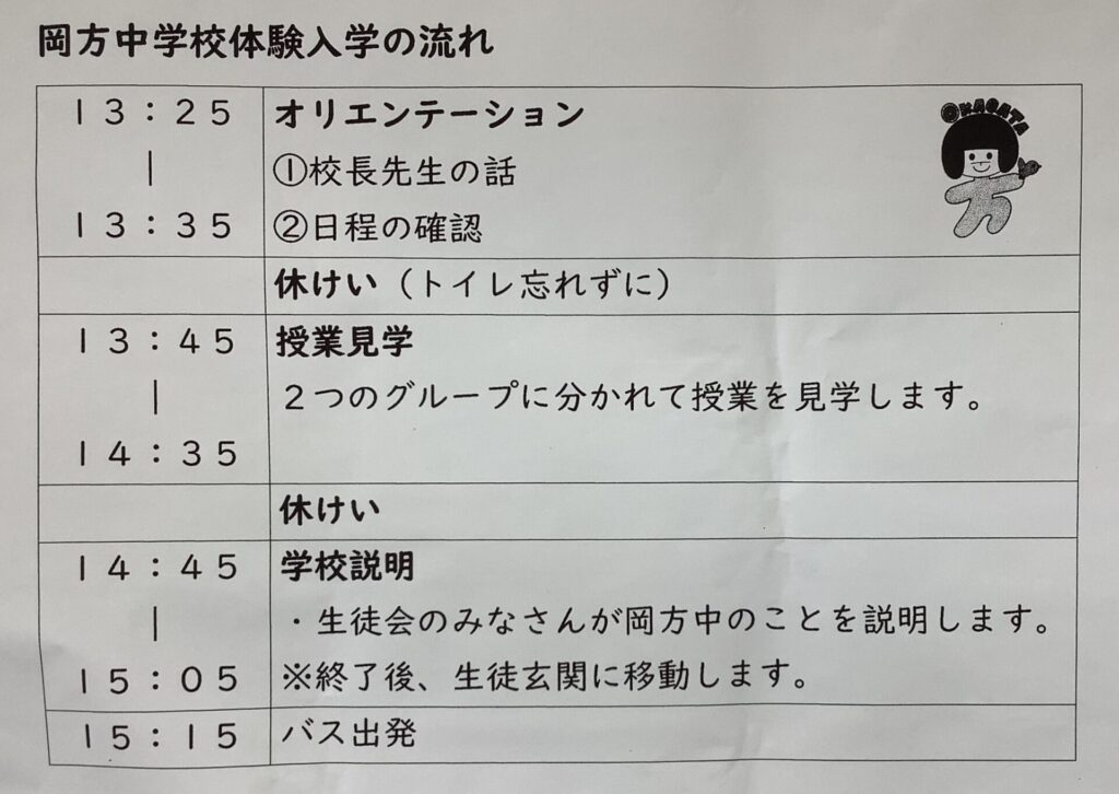岡方中学校前田校長先生のお話にもあったように、「半年後、1年後、2年後、3年後の自分の姿」を想像して生活を送ってくださいね。