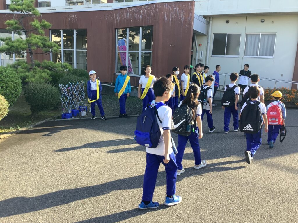 全校校外活動の疲れを感じさせずに、岡方第二小学校の子どもたちが元気な表情で登校し、1週間が始まりました。