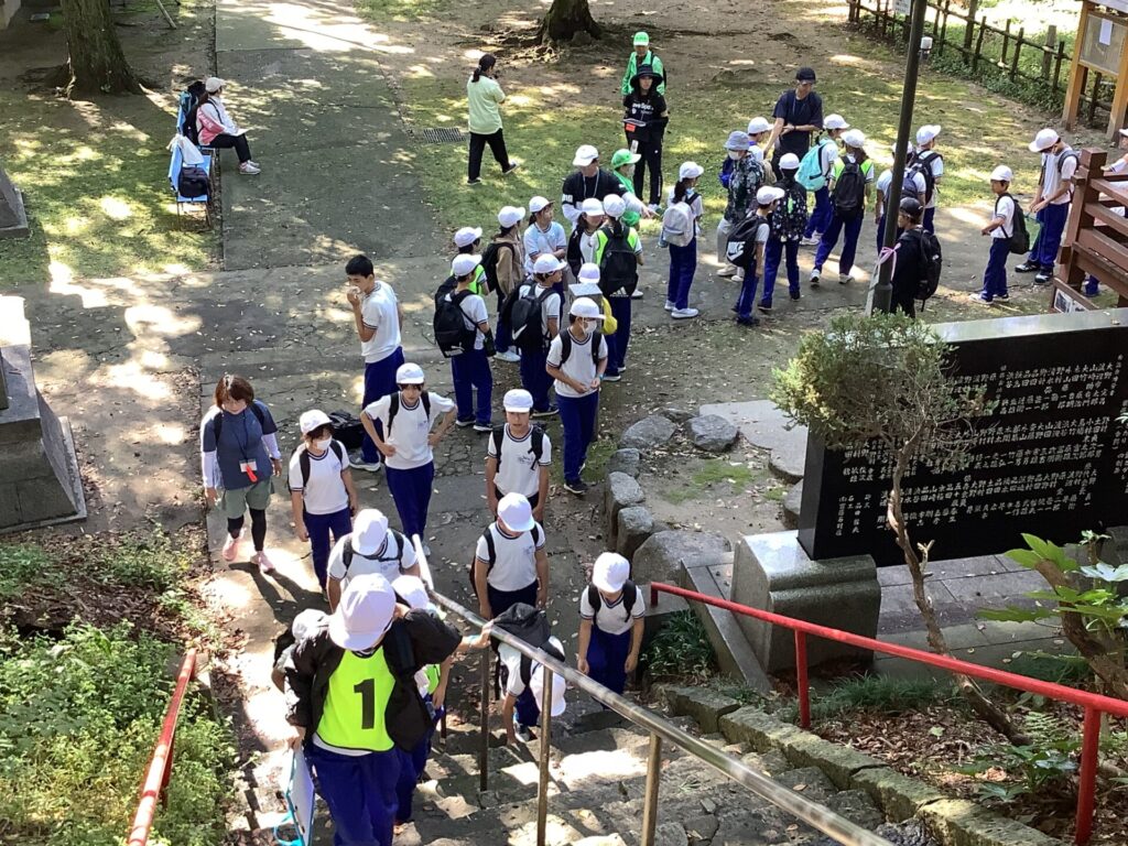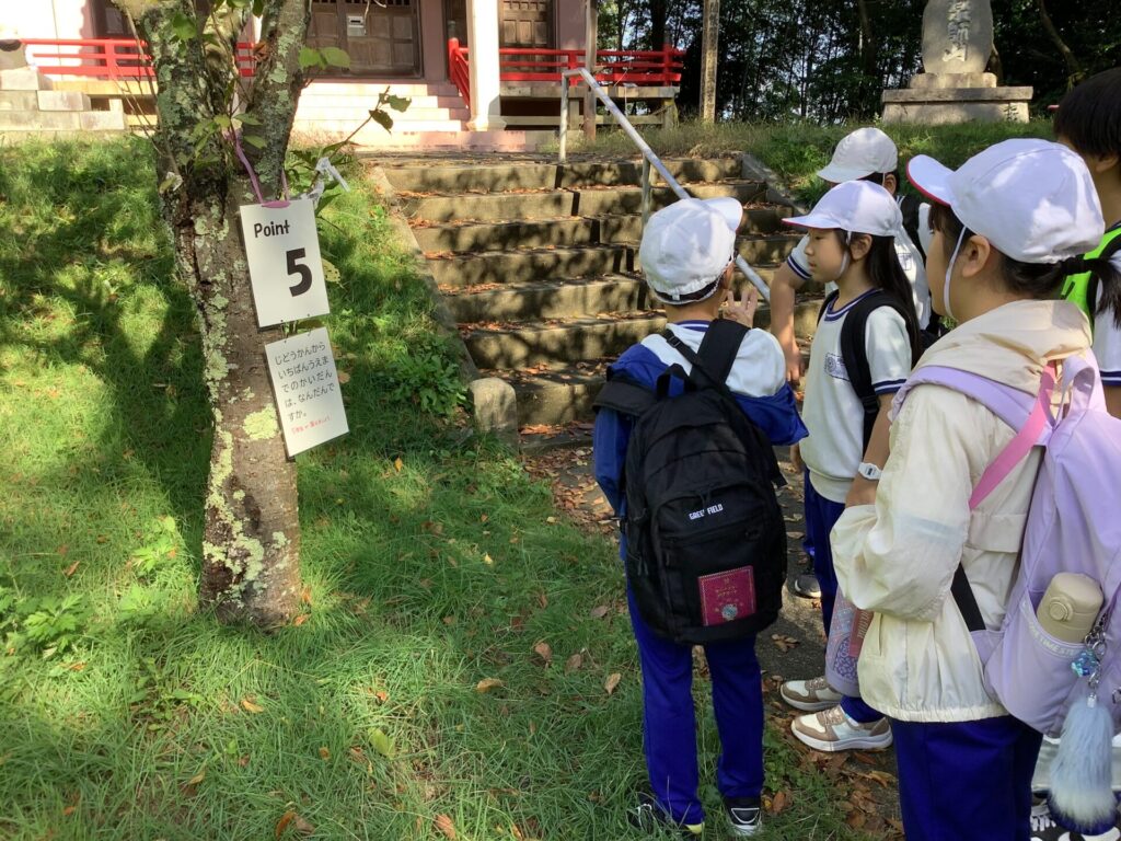 高森神社に到着、けやき班に分かれてウォークラリーが始まりました。