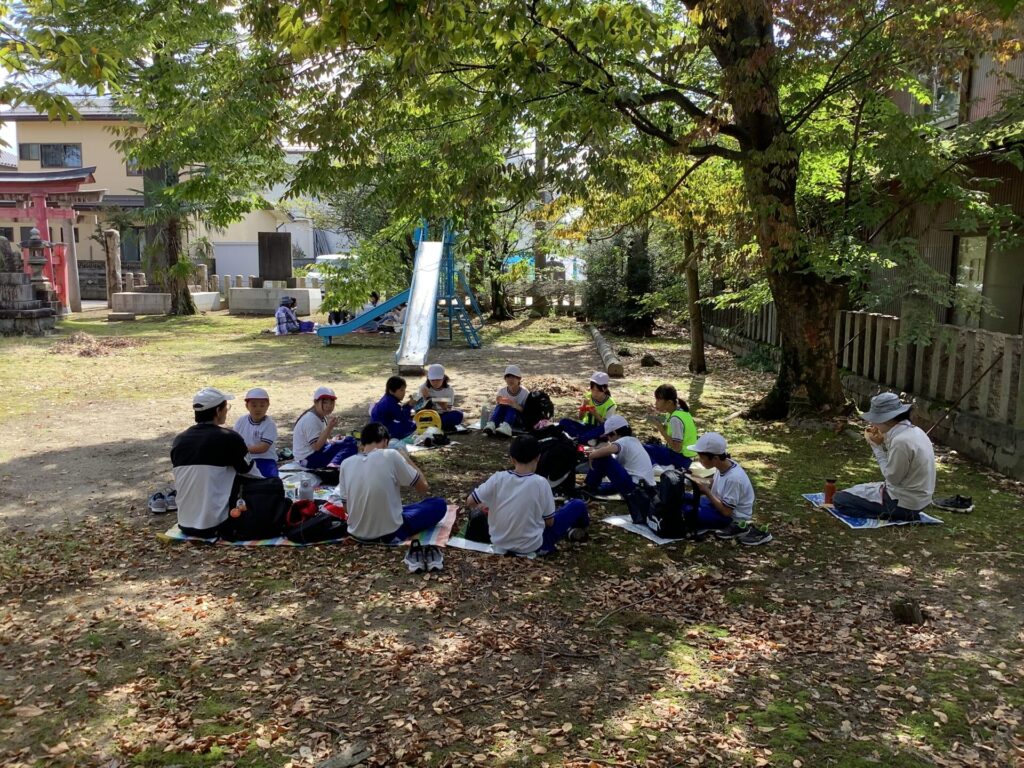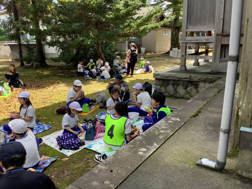 稲荷神社では、けやき班ごとに写真撮影、お弁当タイムを過ごします。