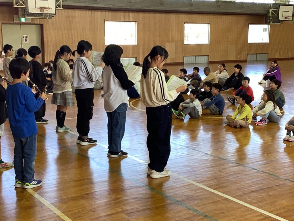 午後の体育館には、3・4年生の音楽発表が広がりました。