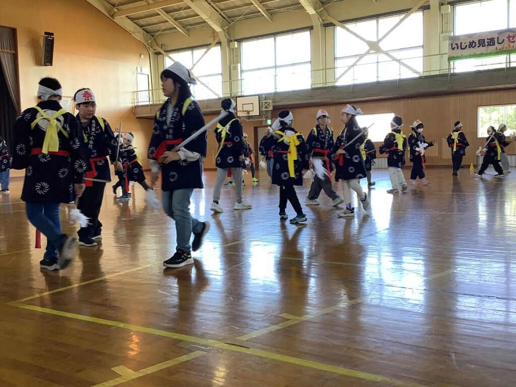 その後、3~6年生から岡方第一小学校、岡方中学校に向けて神楽舞の披露。