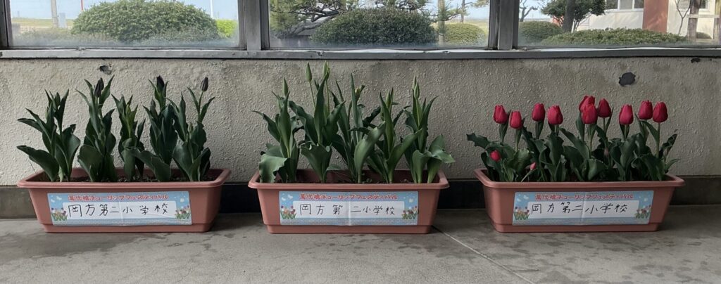 第2回目の岡方第一小学校との交流活動、3・4・5年生は岡方第二小学校、1・2・6年生は岡方第一小学校で行いました。
