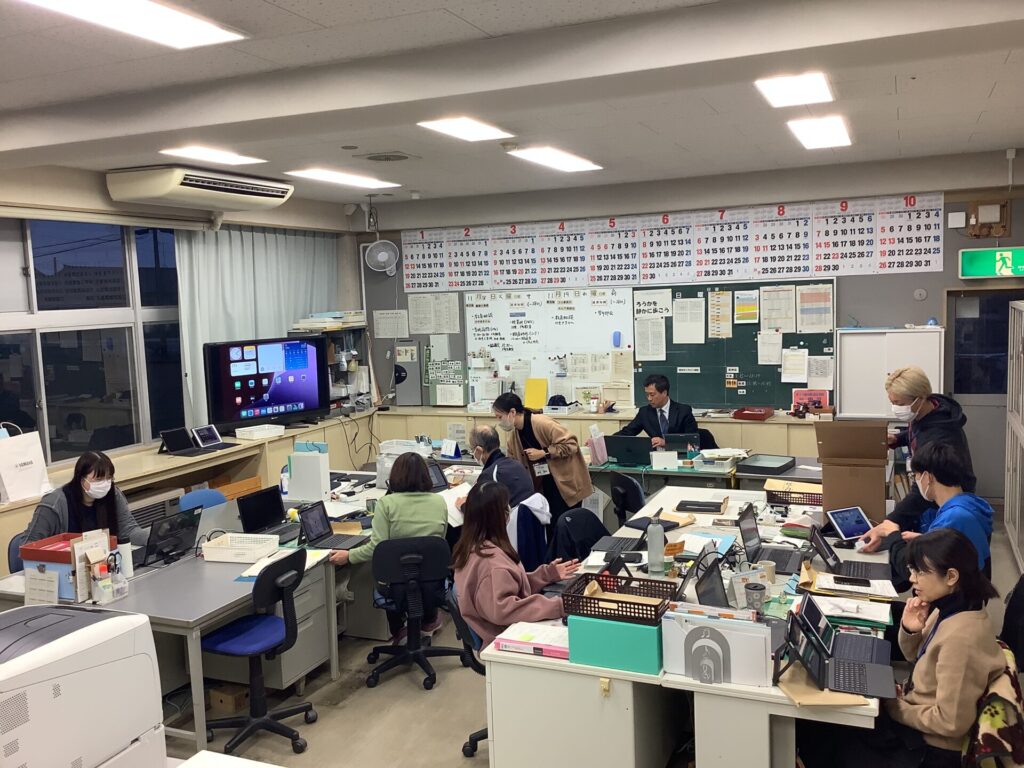 そんな中でも、元気な岡方第二小学校の子どもたちの活動意欲に応えるために、職員も研修を積んでいます。
