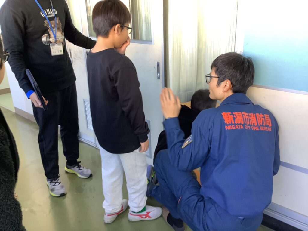 そんな中、新潟北消防署から2名の署員が来ていただき、3年生リトルファイヤースクールが開かれました。