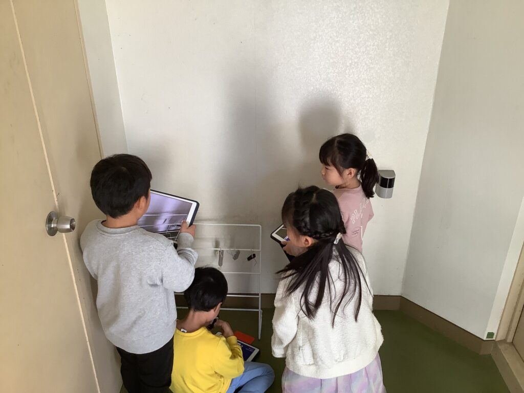 1年生は、図工で作成した「すきまちゃん」を校内のすきまに置いて撮影しました。