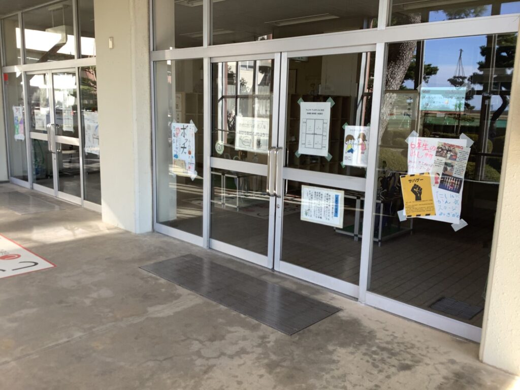 校内には会場図、児童玄関には3~6年生のブース紹介が掲示され、給食時には出店PR放送も流れています。