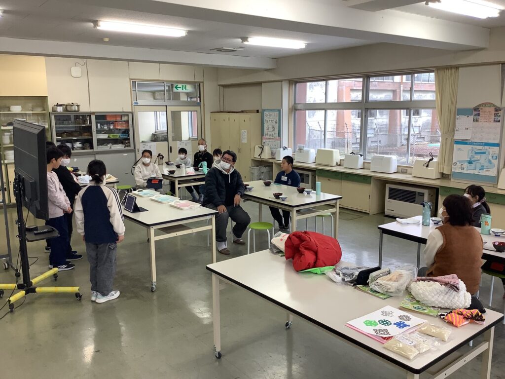 強風そして降雪と厳しい寒さの外ですが、3時間目からの家庭科室は温かさに包まれていました。