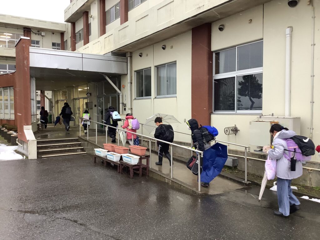 令和8年初日は、全校集会、学級活動、発育測定、給食と進み、13時20分頃下校予定です。