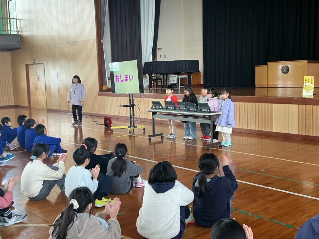 1年生は、大事に育てたアサガオについてのクイズをiPadを使って出しました。
