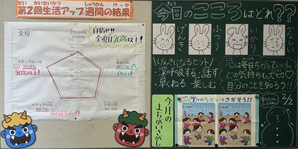 さて、2月6日(金)からの家庭学習・生活アップ週間、子どもたちは意識して家庭で過ごしているでしょうか。