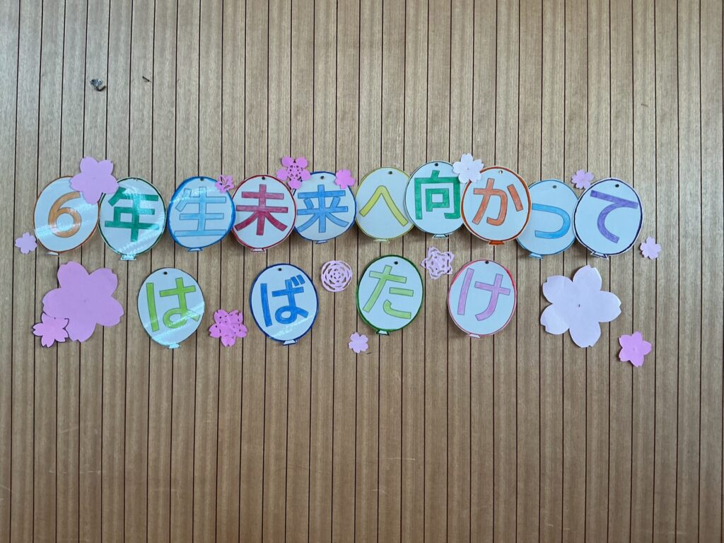 体育館には素敵な掲示、6年生を送る会への盛り上がりを感じさせます。