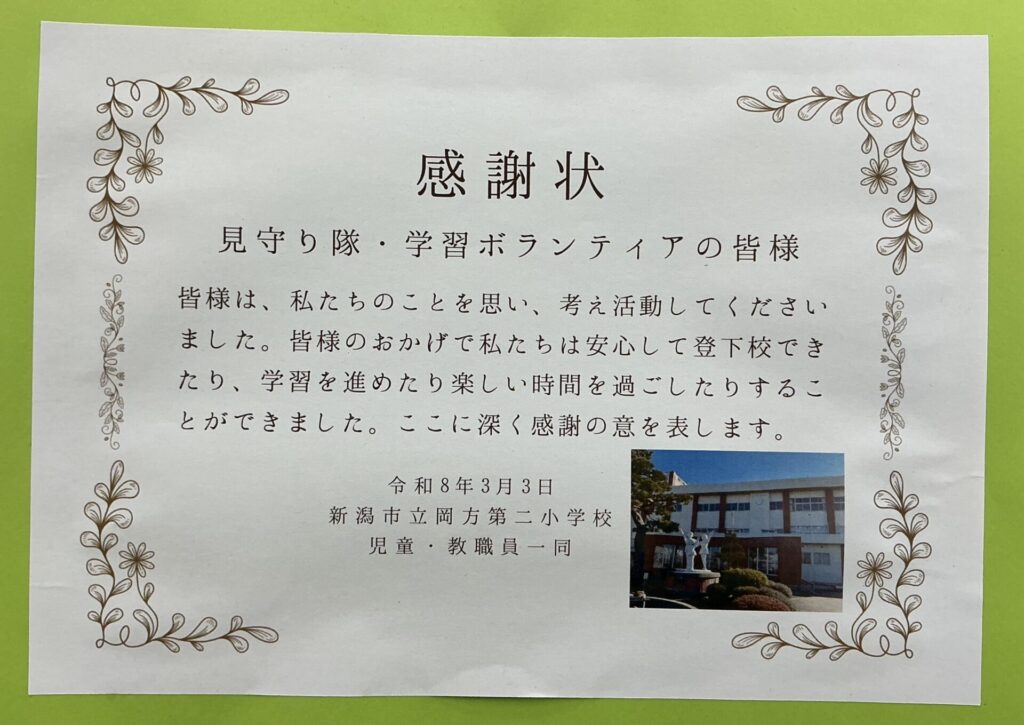 岡方第二小学校を支えてくださったボランティアの皆様、本当にありがとうございました。