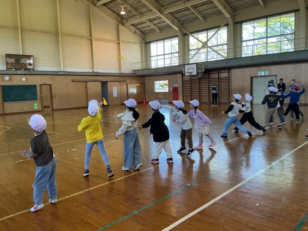 3時間目の体育館には、岡方第二小学校の子どもたちの笑顔と楽しそうな声が広がりました。