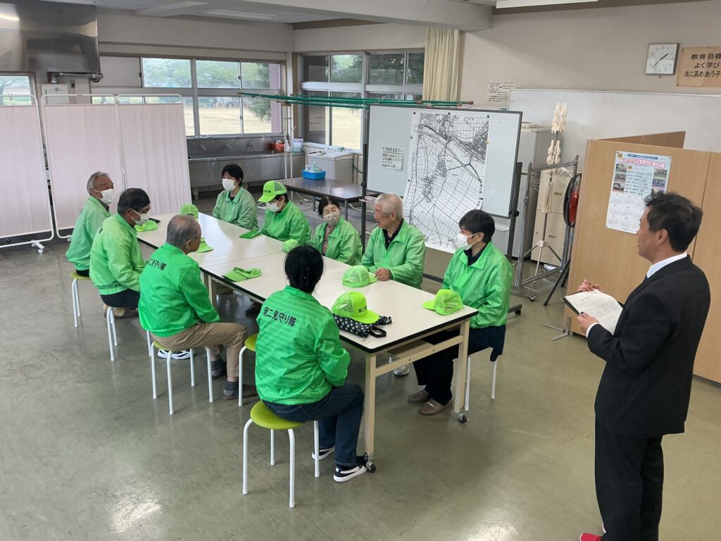 4月27日(月)午後、岡方第二小学校の子どもたちの安全安心を見守ってくださる「岡二見守り隊」の皆様との対面式が行われました。