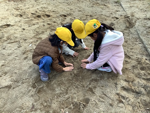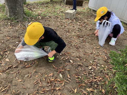 生活「あきであそぼう」の授業で,ポプラ公園に行きました。5日(水)に1組,6日(木)に2組が行きました。公園でたくさんのどんぐりや赤い木の実,とんぼなどを見付けていました。その後,事前に自分たちで決めていた遊びをしました。子どもたちは,「もっとたくさんどんぐりを見つけたい。」「学校にはない木の実が落ちているよ。」など秋探しを通して秋の良さを感じていました。
