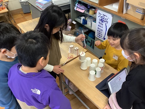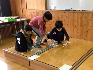 12月22日(月),2年生の「おもちゃランド」を開きました。2年生が生活科の学習で作ったおもちゃを披露し,1年生のみんなに,そのおもちゃを使ったゲームを楽しんでもらいました。