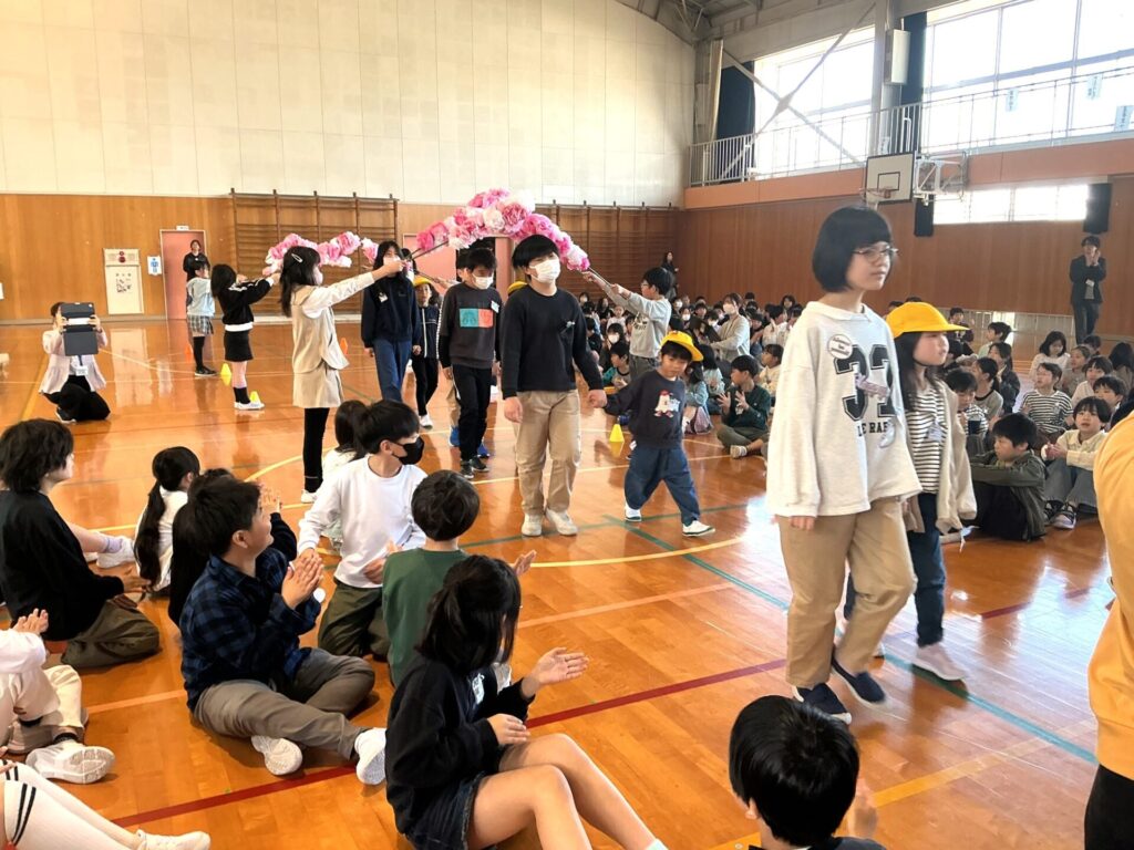 最後は校歌合唱です。子どもたちの綺麗な歌声が、体育館に響きました。