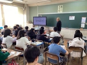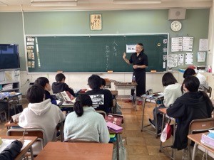 11月25日(火)にキャリア講話の3回目を行いました。3回目は「あたりめのハレリー」宇留間義矢さん、イタリアンレストラン「IJIRUSHI」伊藤健之さん、ライフデザイン「SUNNY DAYS」雪井幸太郎さんの3名をお招きし、仕事で大切にしていることや、生きていく上で大切にしている考え方などをお話しいただきました。いろいろな視点からのお話に、子どもたちもたくさんのことを学ぶことができました。