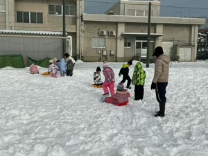 雪玉を転がして雪だるまを作ったり、雪山をそりで滑ったり、友達と楽しく活動する姿が見られました。子どもたちからは、「たくさん遊べて楽しかったね」「また遊びたいね」という嬉しい声が聞こえました。