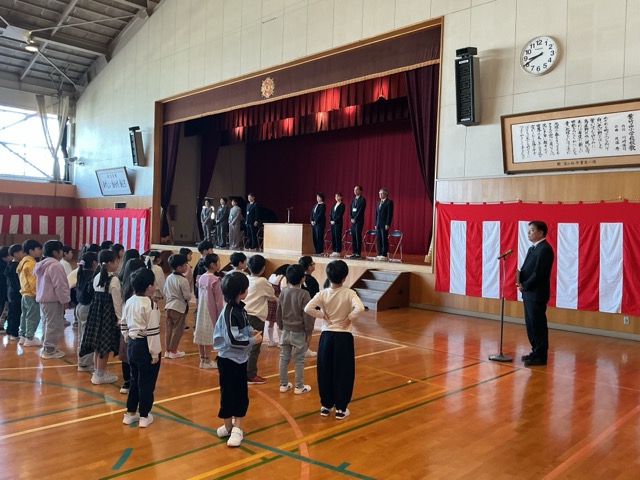 ・その後、引き続き前期始業式がありました。畑智校長先生のお話の後に、新しい担任の先生の発表がありました。子どもたちは自分の担任の先生が誰かドキドキしながら発表を待っていました。