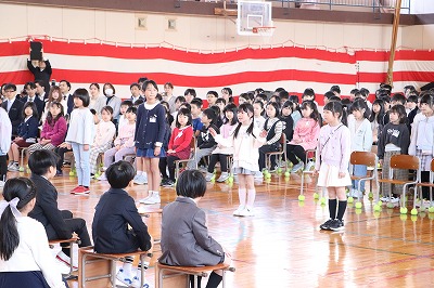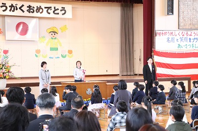 式の中では、2年生が学校の楽しい生活を教えてくれました。1年生が小学校生活に慣れて、楽しい毎日を過ごしていけるように、職員一同見守っていきます。保護者の皆様、ご入学おめでとうございます。