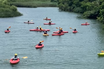 午前の活動が始まりました。快晴です。カヌー班は、海からの風を浴びながら気持ち良く漕ぎました。
