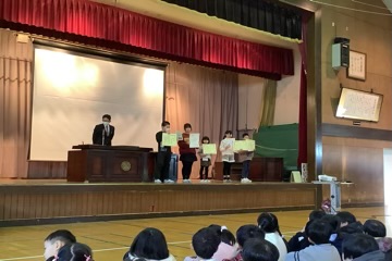 いよいよ明日から子どもたちが楽しみにしていた冬休みです。安全で楽しい冬休みになるように、校長や生徒指導担当から話がありました。また、絵画や科学研究などの表彰もあり、校長から賞状を受け取りました。