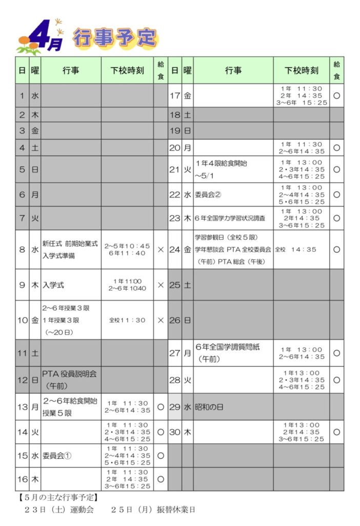 令和7年度年間行事予定表