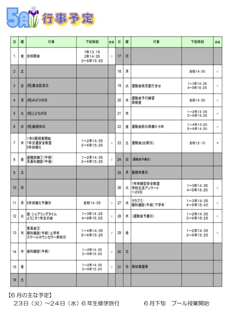 令和7年度年間行事予定表