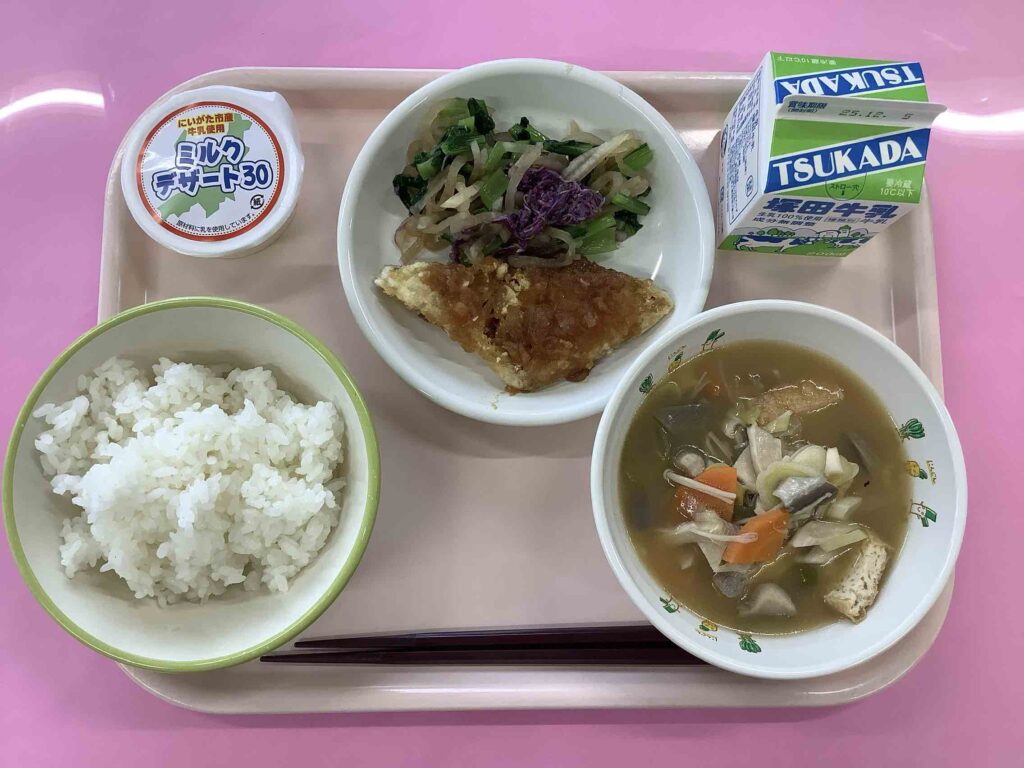 11月28日(金)には、「キラッと新潟米⭐︎地場もん献立」がありました。新潟の食の魅力を知り、地産地消や地域の食文化の継承について考えるよい機会となりました。