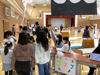 3〜6年生は、クラスで考えた内容で出店をしました。出店内容を決めるときには、いろいろな考えが出される中、折り合いをつけながら話し合いを進めていました。今日は、どのクラスの出店も盛況で、学年を問わずコミュニケーションを図る姿が見られました。