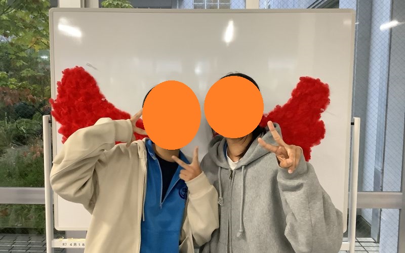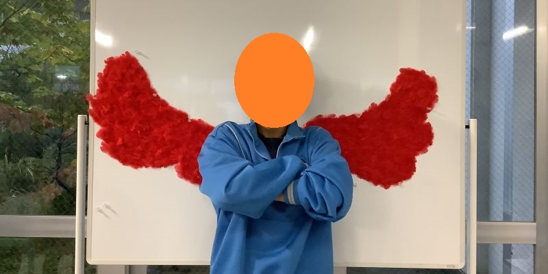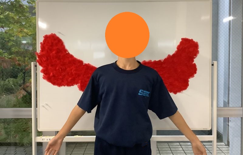 募金が終了したあとも「大きな赤い翼」は映えスポットとしてしばらく生徒玄関前廊下に掲示してあります。