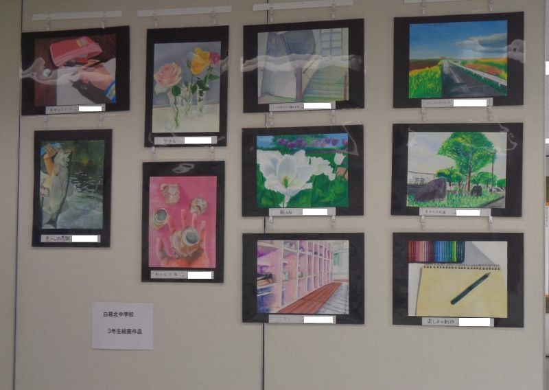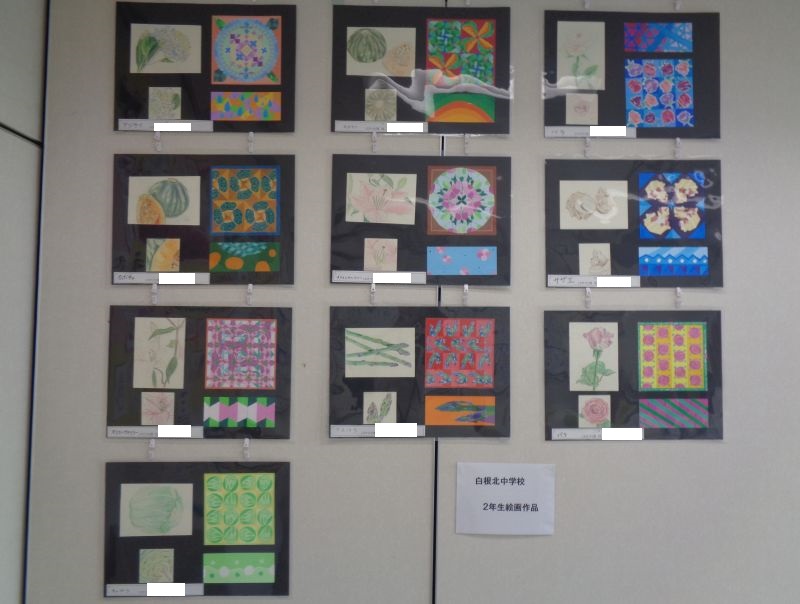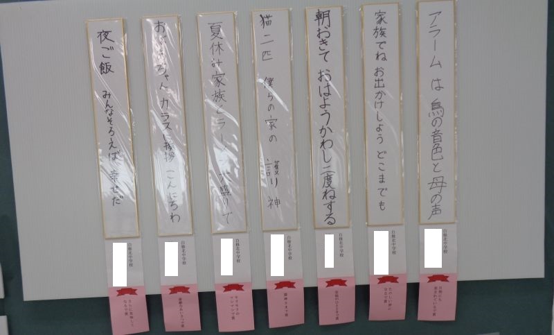 また、2、3年生の美術で制作した絵画、1年生の夏休みに制作した家族川柳が展示されていました。是非ご覧になってください。