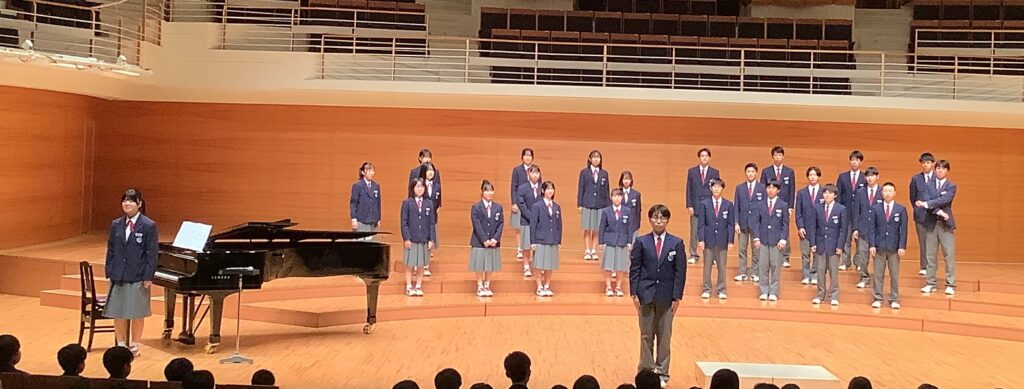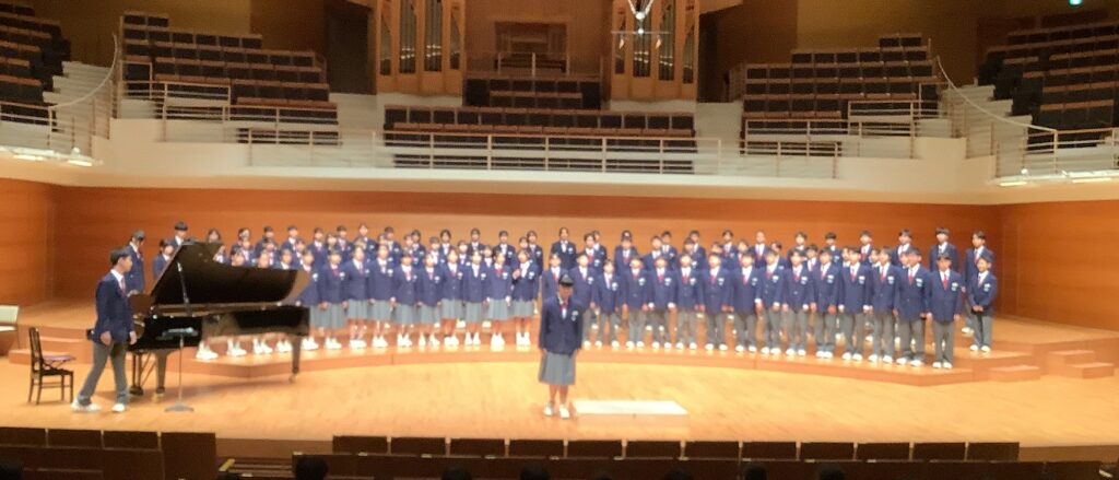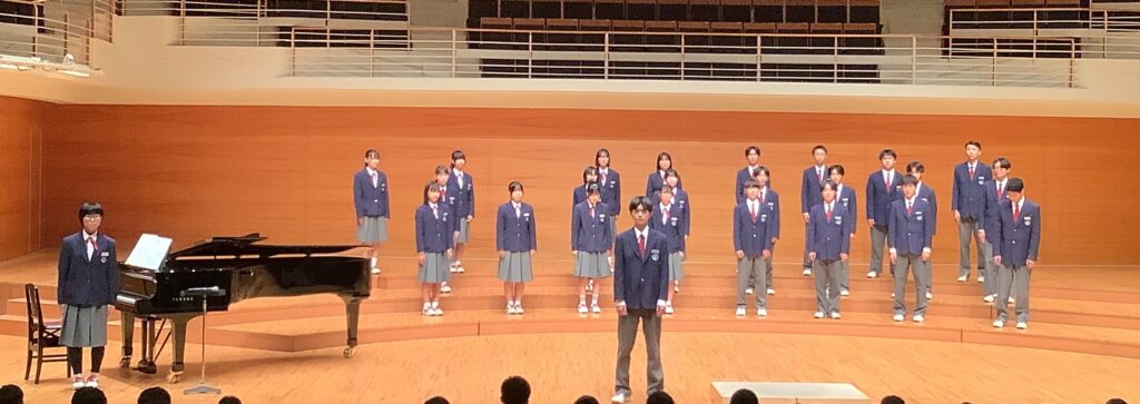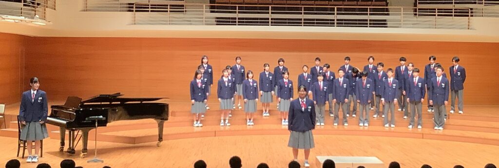 大きなステージに立って披露することに緊張する姿もありましたが、どのクラスも今までの練習の成果を発揮し、感動の合唱になりました。