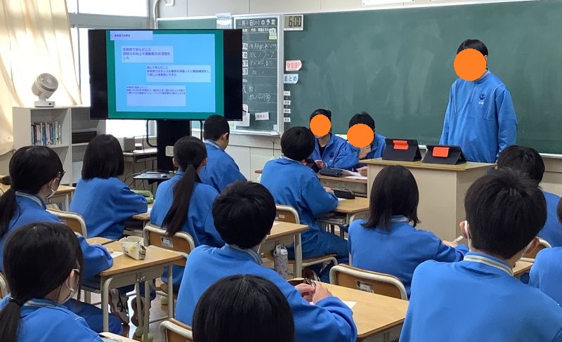 3年生が白根北中学校で経験してきた様々な活動とそこから得た学びをスライドにまとめて発表しました。
