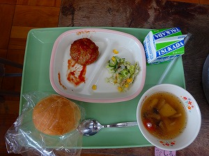 今日の給食はハンバーガーが出ました。背割りのパンにハンバーグやツナサラダを挟み、頂きました。一年生は初めての給食のメニューにお喜びをしていました。今日から、前期末ということで、4時間授業となります …