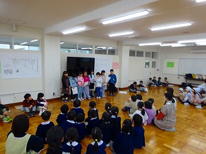 1年生が4月に新1年生となる保育園の園児と交流会を行いました。白根保育園、白根おおぞら保育園、白根カトリック保育園の三つの園児たちが交流会に参加してくれました。会の中では、遊びのほか、学校の紹介やア …