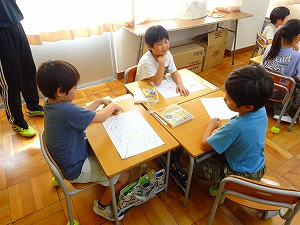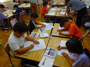 1年2組の授業にて、図工の研究授業が行われました。題材名は「せんのぼうけん」で、子どもたちは、線を道にしたらどんな冒険ができるか自由な発想で楽しく授業に取り組みました。冒険のラストには、宝物やお家、ラスボスの登場など冒険の終末も自由に考えながら、創意工夫の見られる作品が仕上がりました。